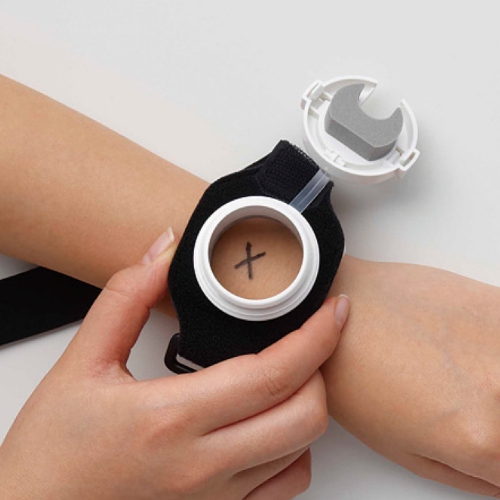 バンドを折り返し、マジックテープでしっかりと固定します。バンド部分が長すぎる場合は、はさみで切ってください。