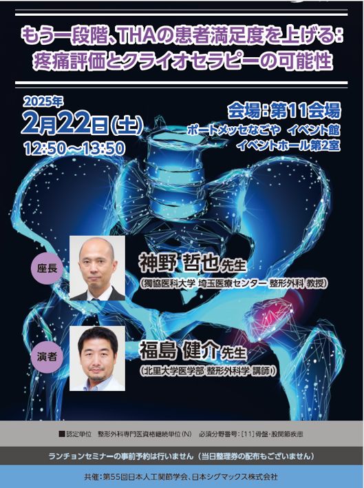 新着記事一覧 学会出展 公開:2025/02/04 第27回日本アメリカンフットボール医・科学研究会に出展します 学会出展 公開:2025/02/04 第55回日本人工関節学会に出展します セミナー 公開:2025/01/16 2025年2月22日(土)第55回日本人工関節学会で共催セミナーを開催します 学会出展 公開:2024/11/18 第2回日本膝関節学会に出展します 学会出展 公開:2024/11/07 第3回日本地域医療学会学術集会に出展します セミナー 公開:2024/11/07 2024年12月7日(土) 第2回日本膝関節学会で共催セミナーを開催します 学会出展 公開:2024/10/31 第35回日本臨床スポーツ医学会学術集会に出展します 学会出展 公開:2024/10/28 第40回日本義肢装具学会学術大会に出展します 学会出展 公開:2024/10/22 第49回日本足の外科学会学術集会に出展します 学会出展 公開:2024/10/15 第58回日本側彎症学会学術集会に出展します 学会出展 公開:2024/10/09 第32回日本腰痛学会に出展します 学会出展 公開:2024/10/03 第35回日本整形外科超音波学会に出展します