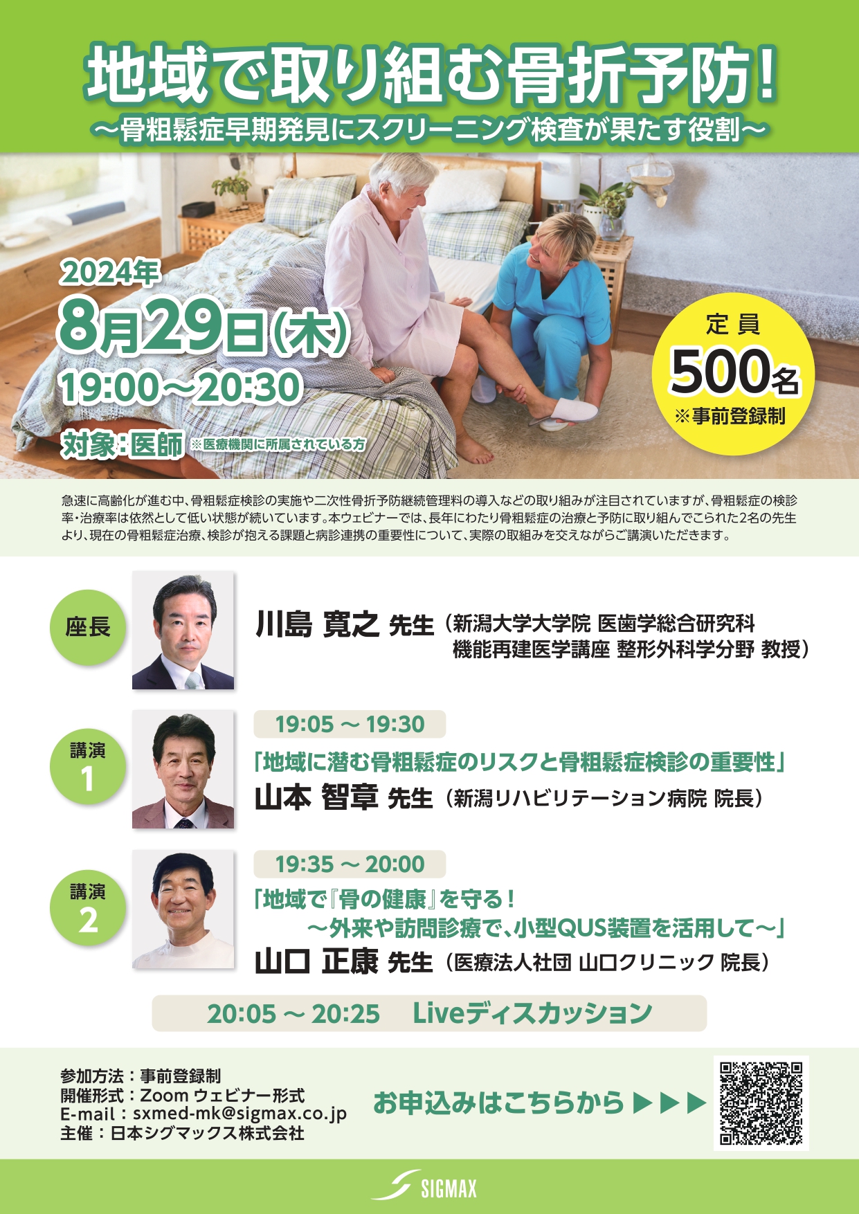 2024年8月29日(木) ウェビナー『地域で取り組む骨折予防! ~骨粗鬆症早期発見にスクリーニング検査が果たす役割~』を開催します